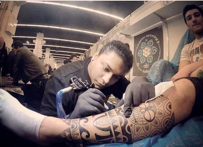 Ich mache mir auch keine Illusionen darüber, dass ich einer der größten Tätowierer bin; es gab schon viele andere. Ich glaube, Kunst hat keinen Rang. Selbst die beiden anderen Künstler aus Indien, Mo Naga und Manjeet, sind meine Freunde. Tatsächlich habe ich mir vor zwei Wochen selbst ein Tattoo von Mo Naga stechen lassen, und ich finde, beide sind großartige Künstler.