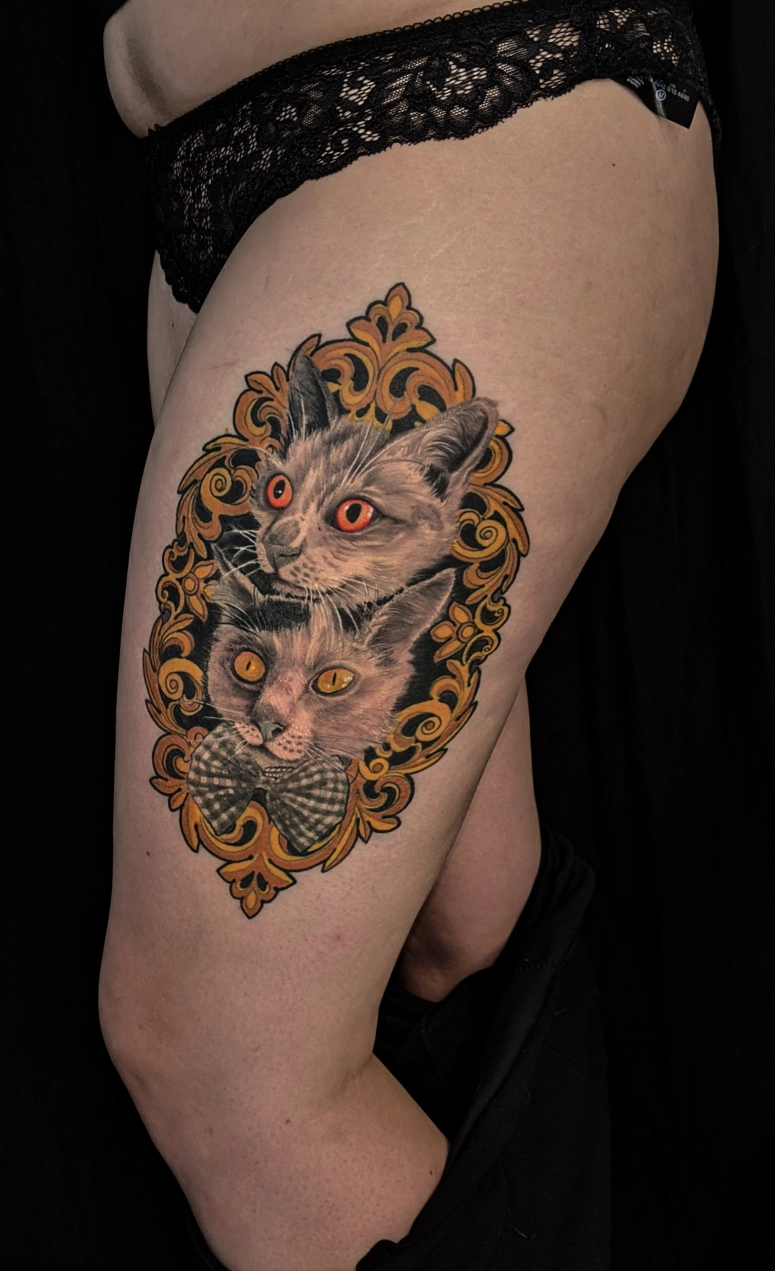 Ich wende mich an Menschen, die bereit sind, ihr Aussehen radikal und unwiderruflich zu verändern - es ist eine Grenze, die sie überschreiten wollen, und ich bin hier, um sie über diese Grenze zu bringen. In diesem Prozess fließen Blut, Schweiß und Tränen. Eine Tätowierung zu bekommen, ist für viele Menschen ein kathartischer Akt, und wenn sie am verletzlichsten sind, liegen sie auf meinem Tattoo-Bett - nackt, blutend, schwitzend und fast bereit, aufzugeben. Es liegt in meiner Verantwortung, diesen Moment der Wahrheit mit ihnen zu teilen und ihnen zu sagen, dass alles wieder gut wird. Ich nehme diese Verantwortung sehr ernst.